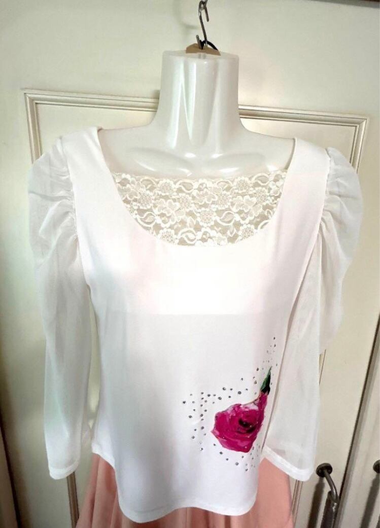 #社交ダンス #ラテン #スタンダード #レッスン着 #練習着 #ストレッチカットソー #ストレッチトップス #ストレッチTシャツ #ラインストーン #キラキラ #レース #お花