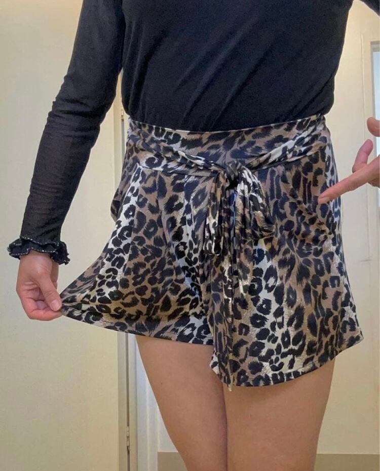 ヒョウ柄 リボンベルト付き ストレッチ ショートパンツ 社交ダンス
